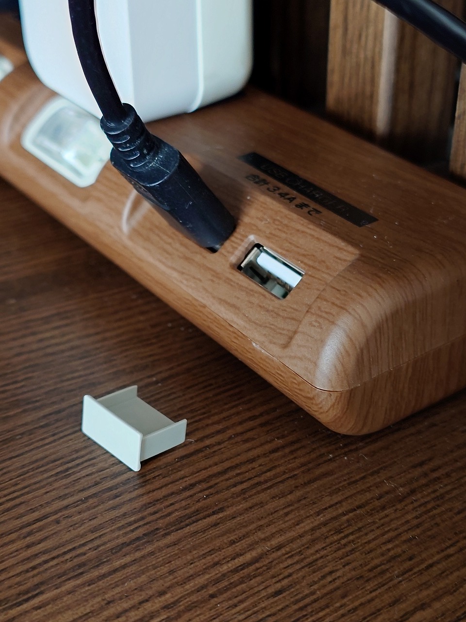 一つはスマホ充電用にUSB A→USB Cケーブルを指しっぱなしですが、もう一つはシャッター機構が無く開けっ放しなので埃が入るのが嫌