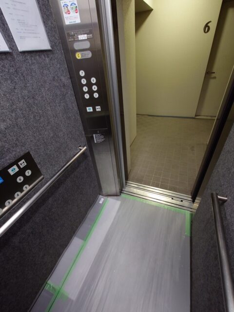 エレベーター内は、4階のリフォームで養生されてますが・・・床だけかい!