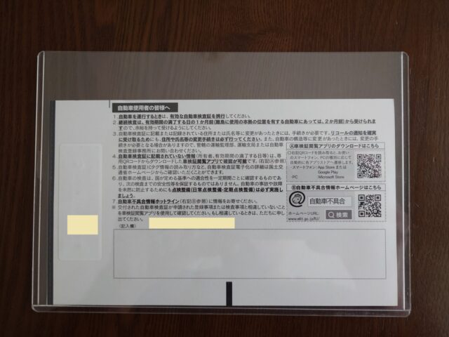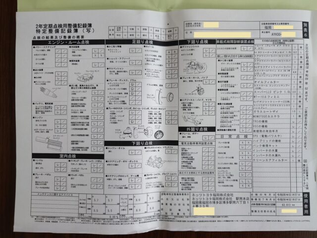 車検証と一緒に入ってた「点検整備記録簿」