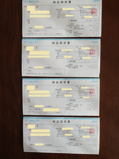 中には4種類の納品請求書