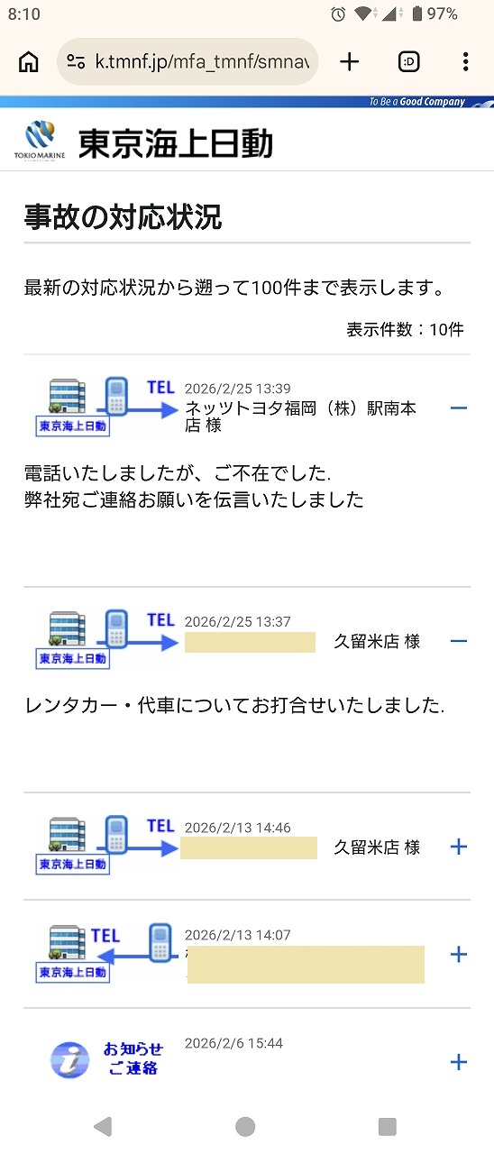 今朝、保険会社から更新通知があり見てみたら、保険適用&レンタカー費用負担について打ち合わせがあったようです