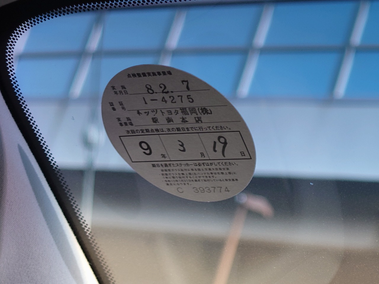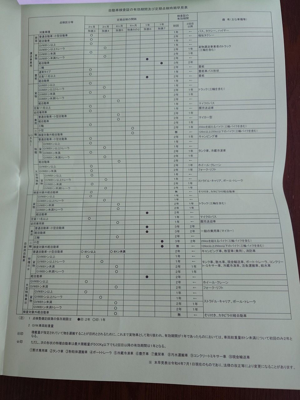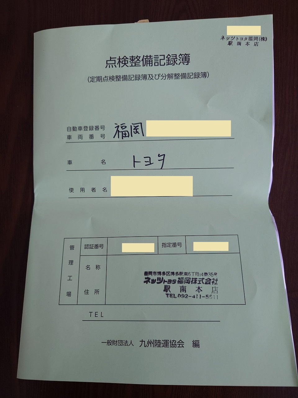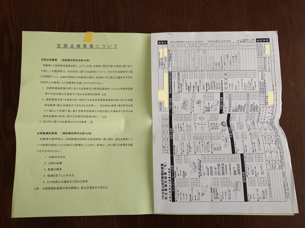 車検証と一緒に入ってた「点検整備記録簿」