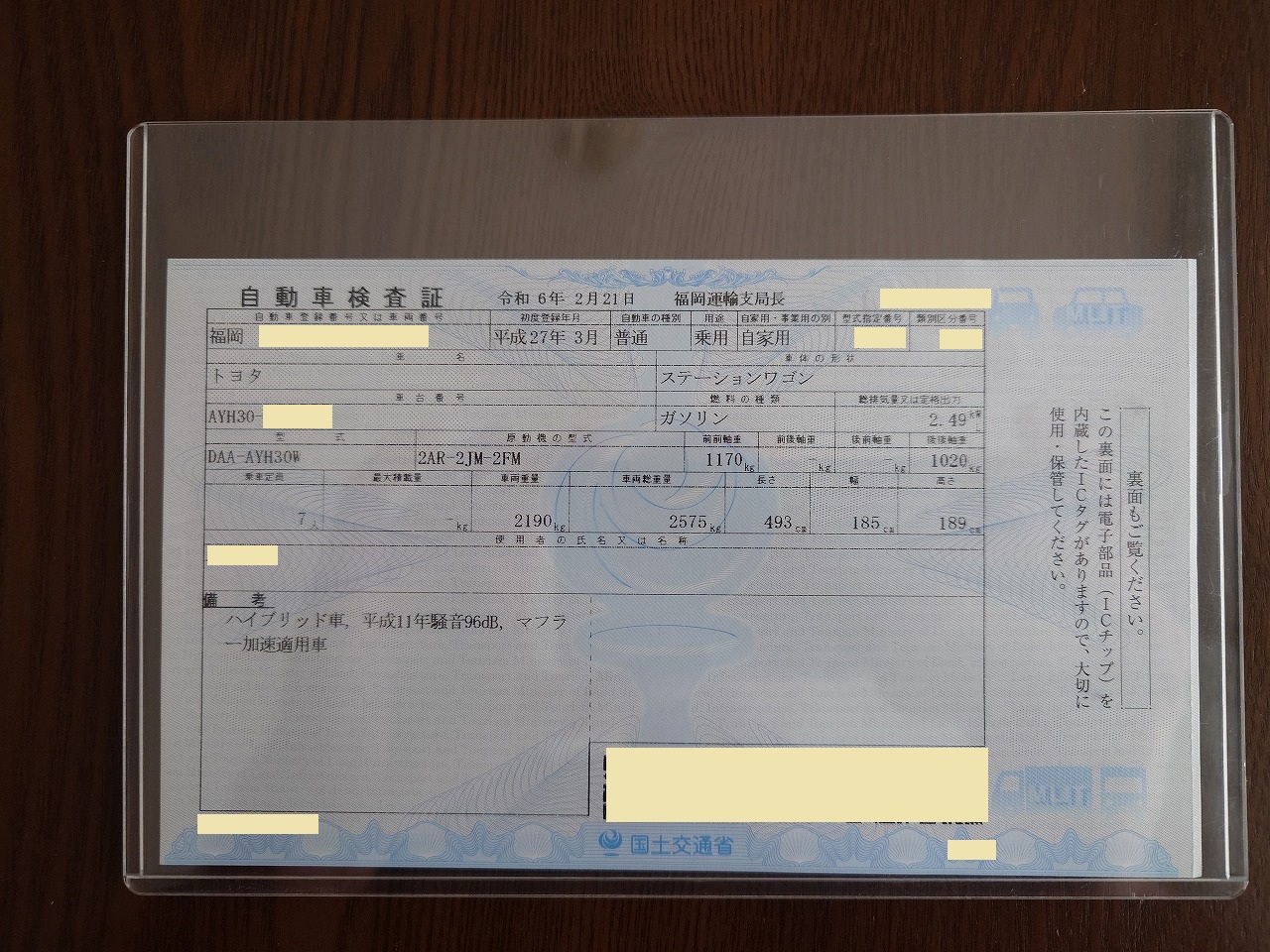 こちらが新しい「自動車検査証」・・・いや、変わってないね