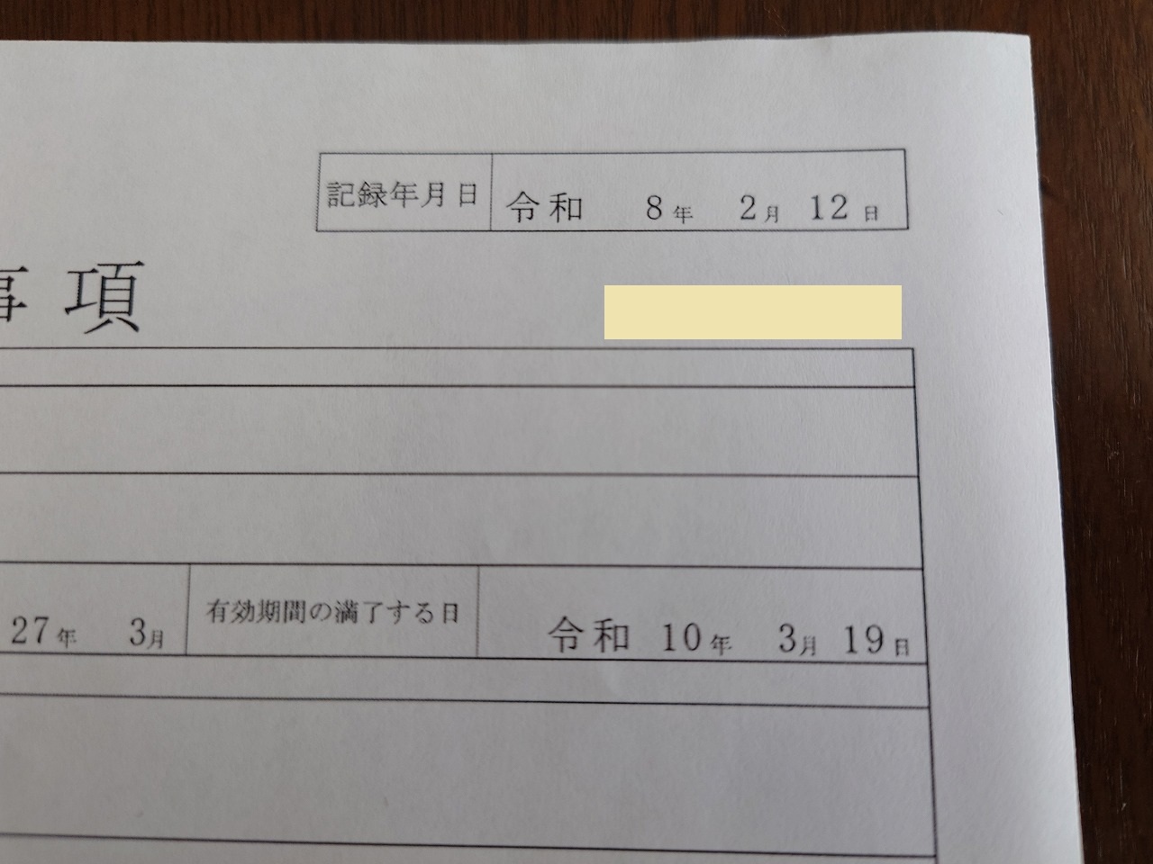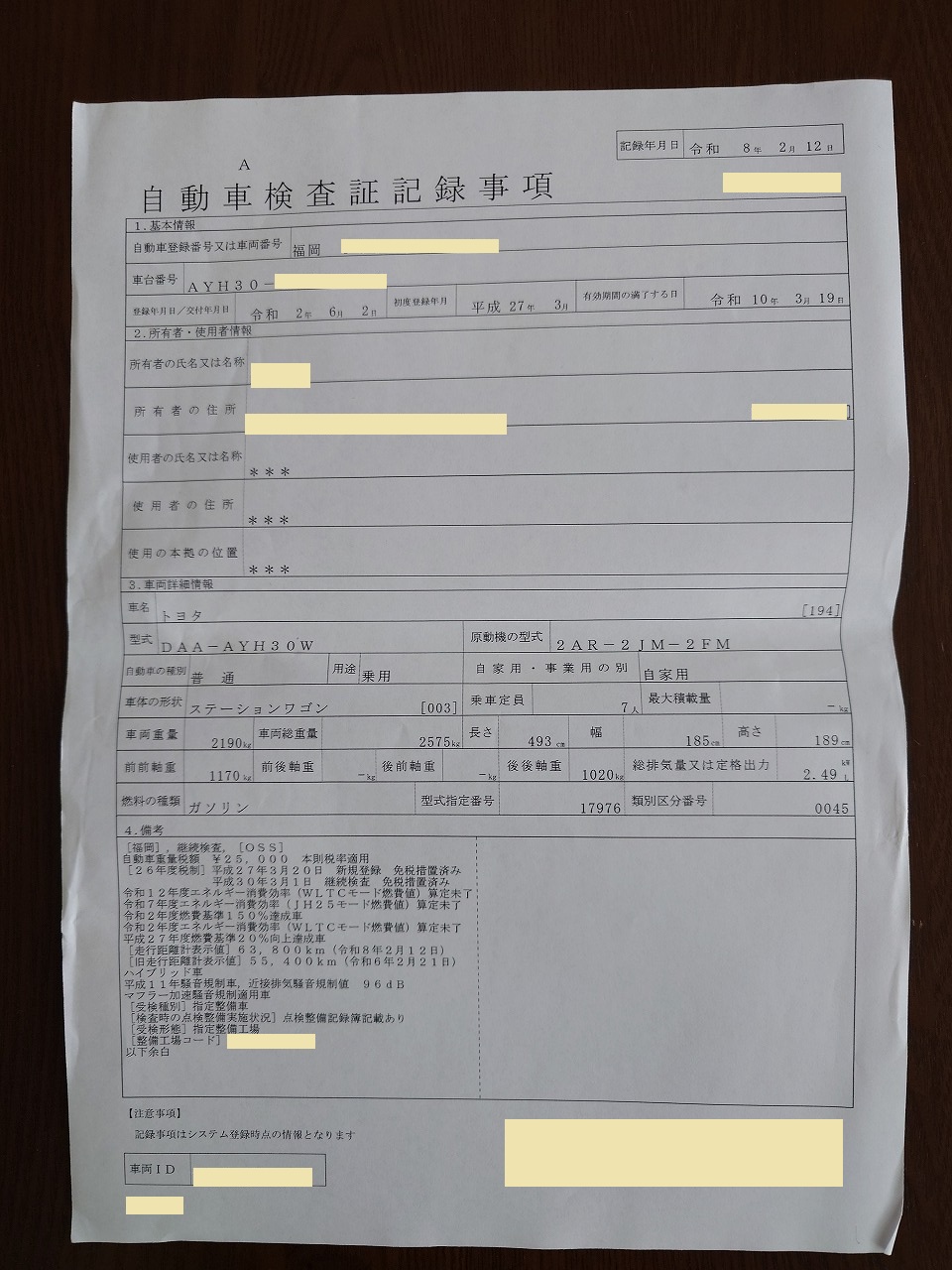 こちらが今回分の「自動車検査証記録事項」
