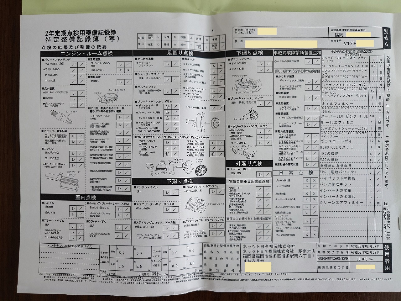 購入から11年、5回目の車検、総走行距離63,821km
