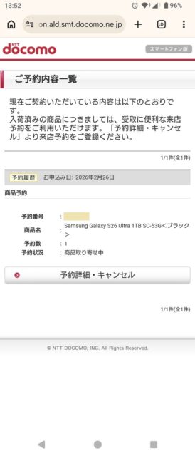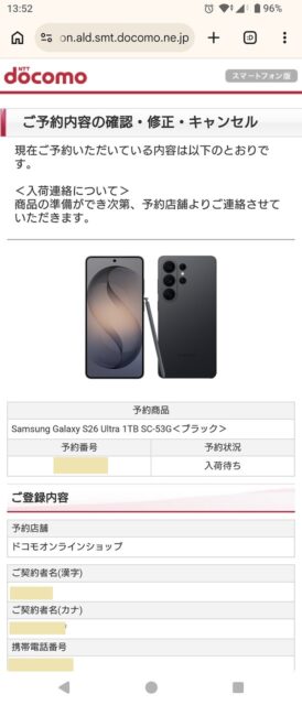 「Samsung Galaxy S26 Ultra SC-53G(ブラック ROM 1TB)」2026年3月12日発売予定 やっと発売予定になったので2年ぶりに予約した 韓流なファンになったので韓国製にしてみようかと しかし、値段見てビックリした (@_@) ■ Samsung Galaxy S26 Ultra SC-53G | Android スマートフォン | 製品 | NTTドコモ https://www.docomo.ne.jp/product/sc53g/?icid=CRP_PRD_android_smartphone_to_CRP_PRD_sc53g&dynaviid=case0012.dynavi
