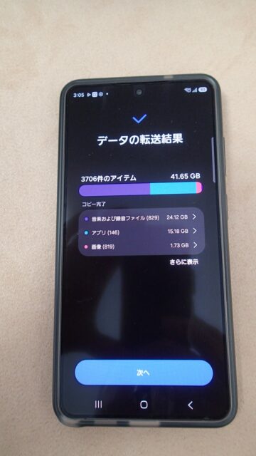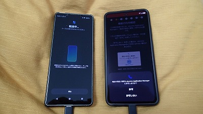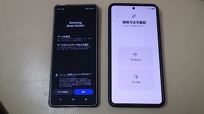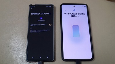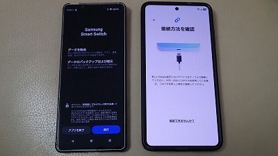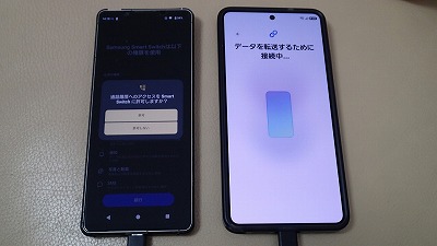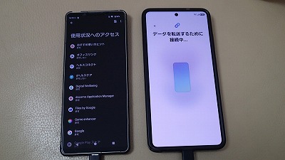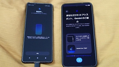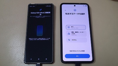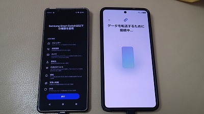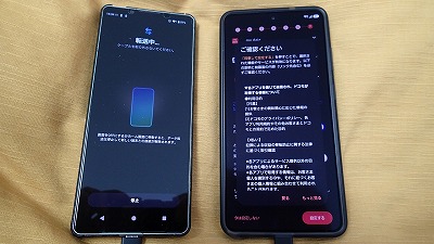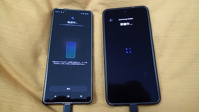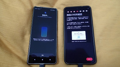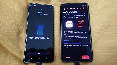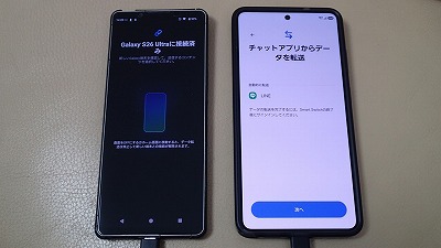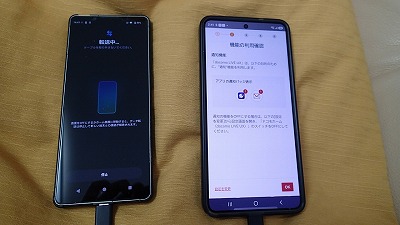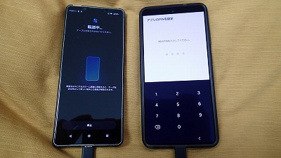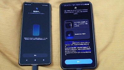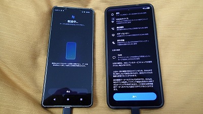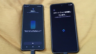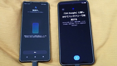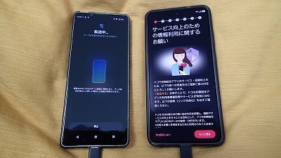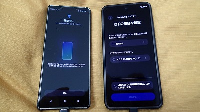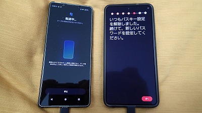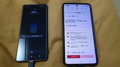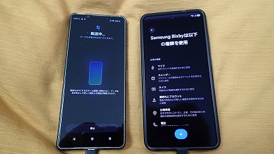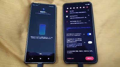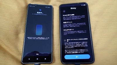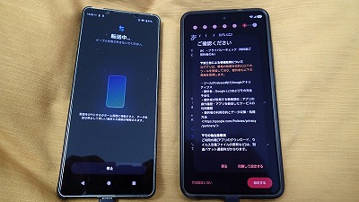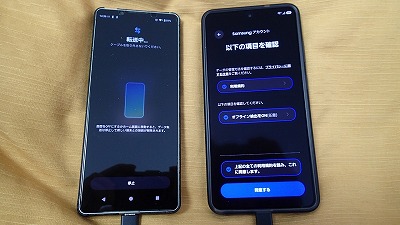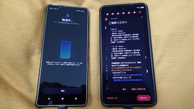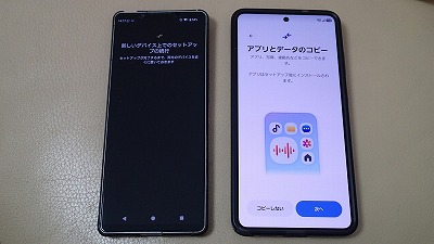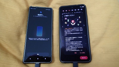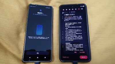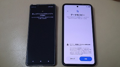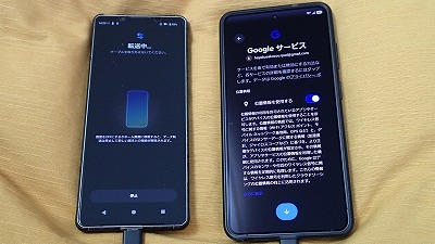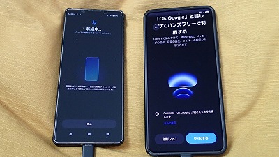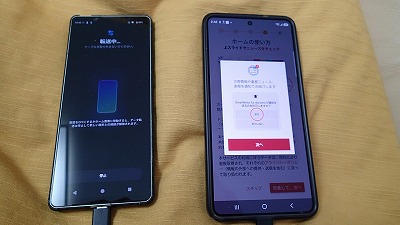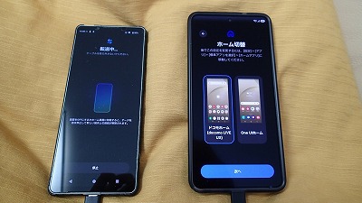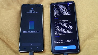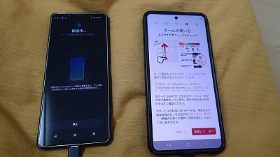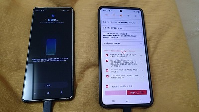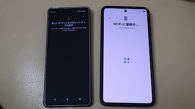 旧スマホと並べ、画面表示に従って粛々と設定を進めます