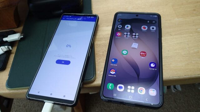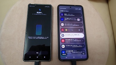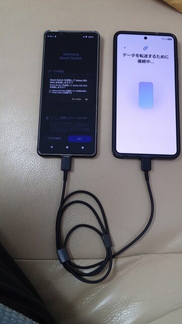 ここでUSBケーブルを使って新旧スマホを繋ぎます
