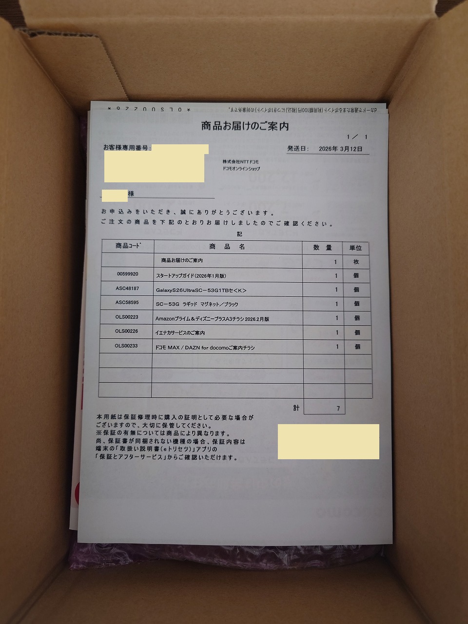 商品お届けのご案内とともに・・・