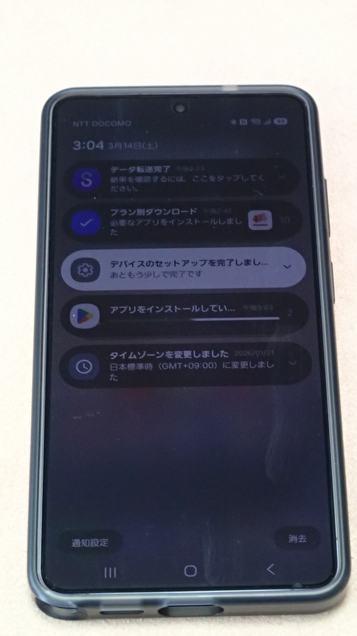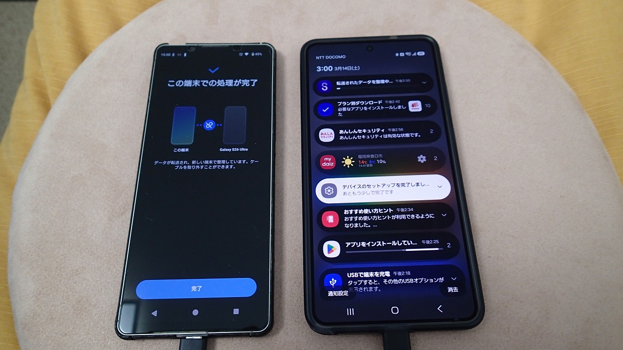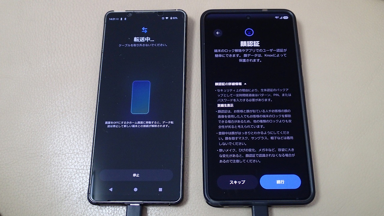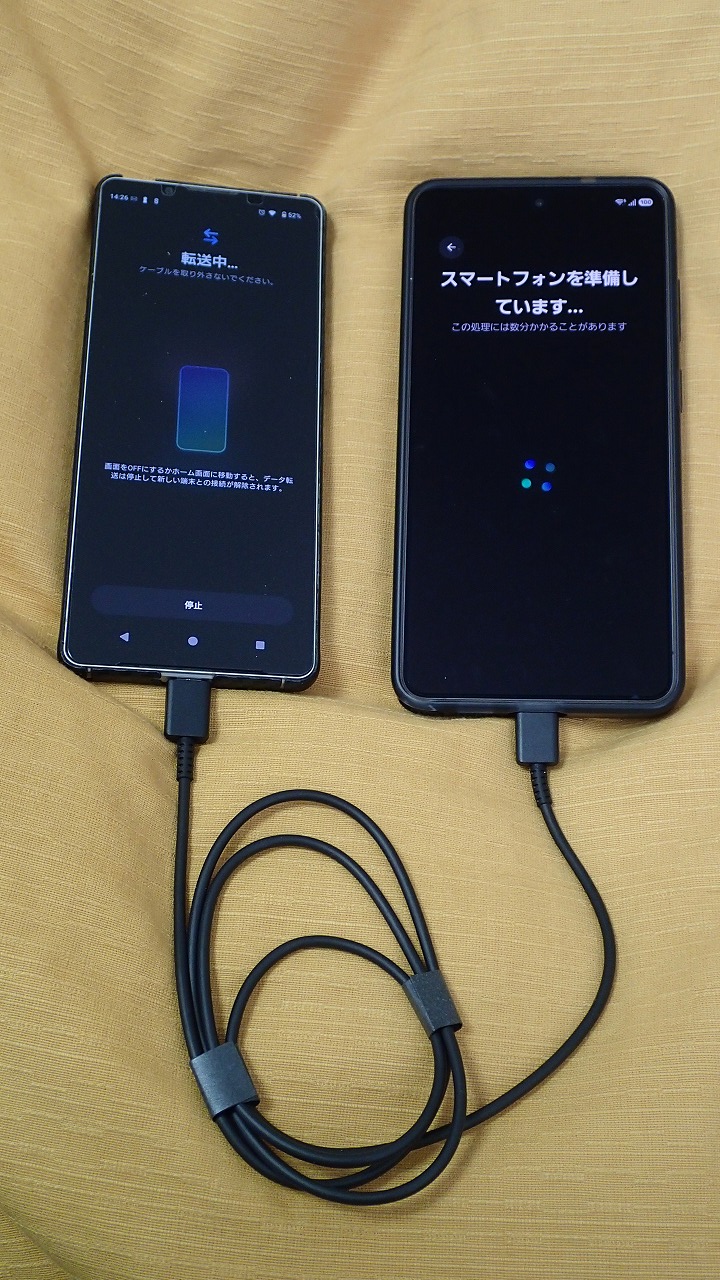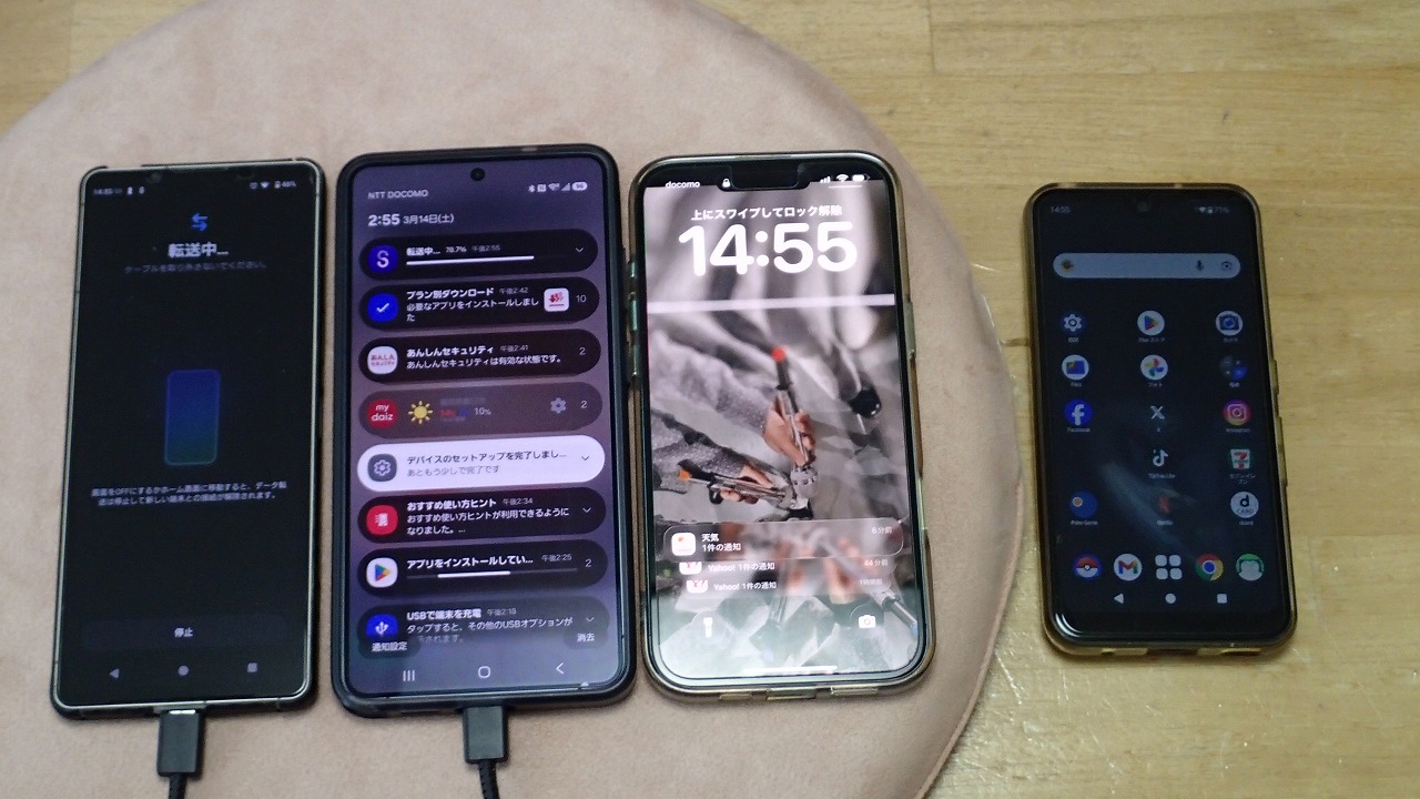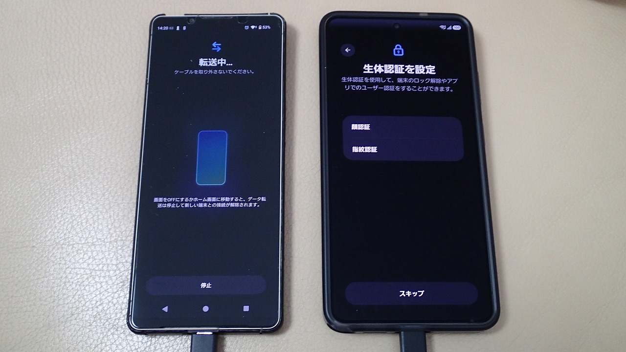 旧スマホと並べ、画面表示に従って粛々と設定を進めます