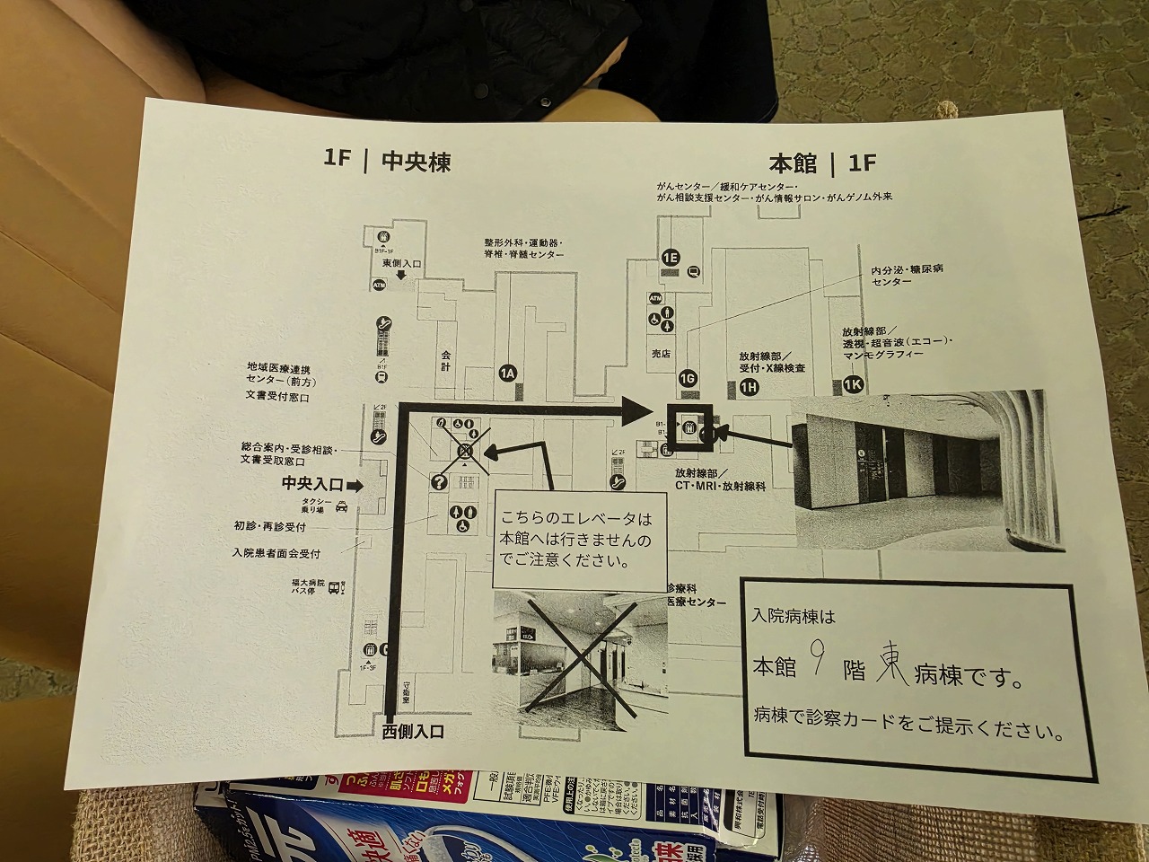 中央棟に入って、案内紙通りに進みます