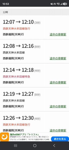 そしてそのまま再度西鉄に乗り、薬院駅で地下鉄に乗り換え