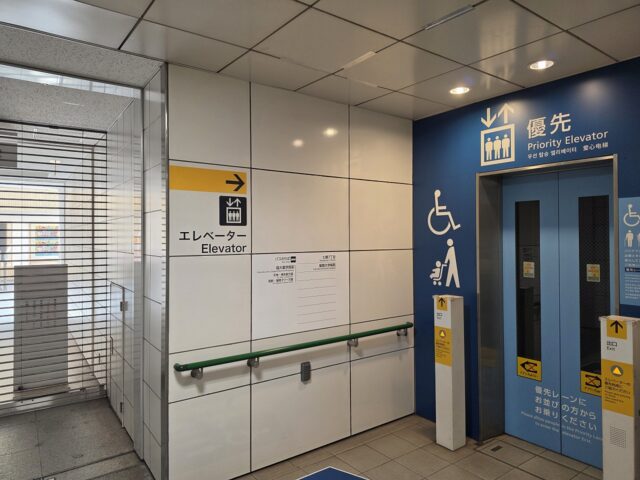 水を購入した嫁とエレベーター前でお別れして出口へ