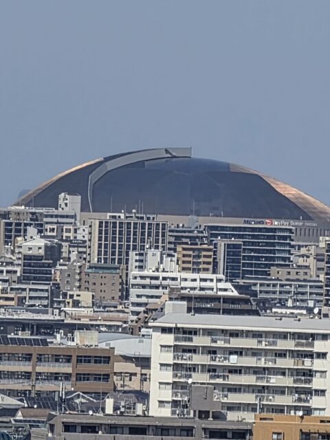 遠くに福岡ドームが見えます