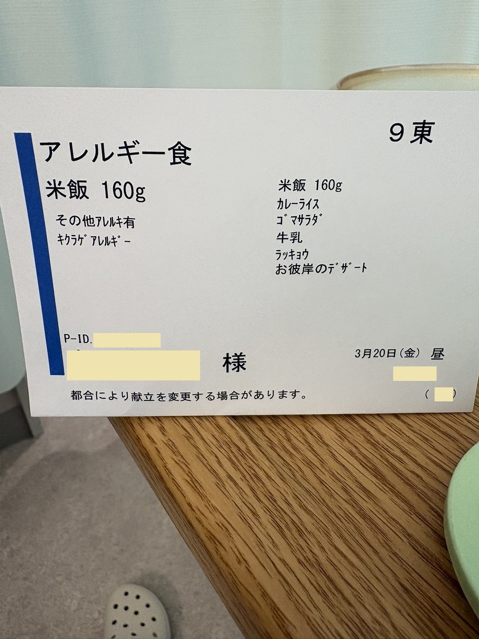 この昼からアレルギー表示が印字になったようです