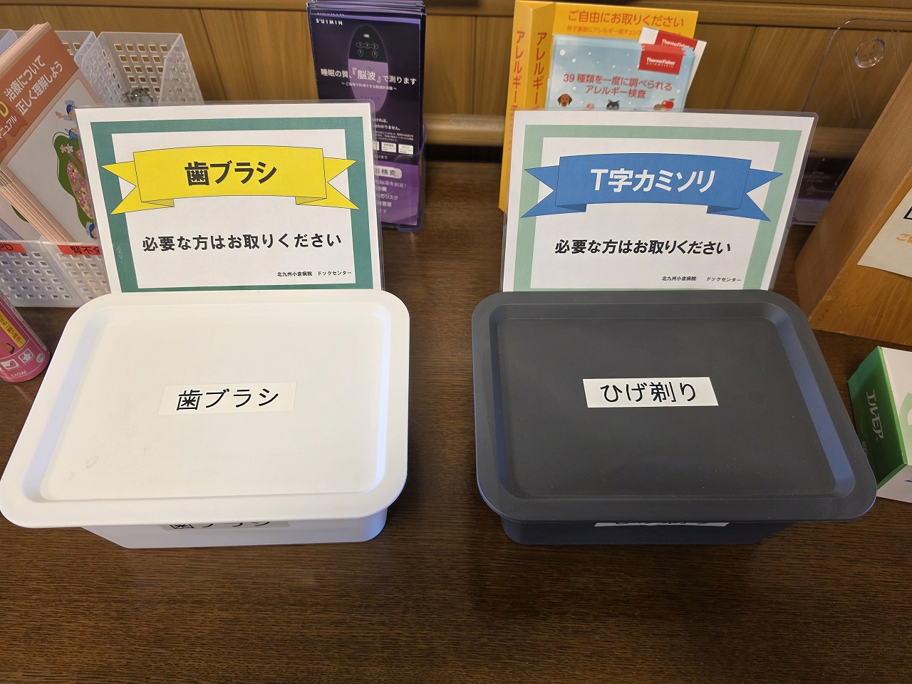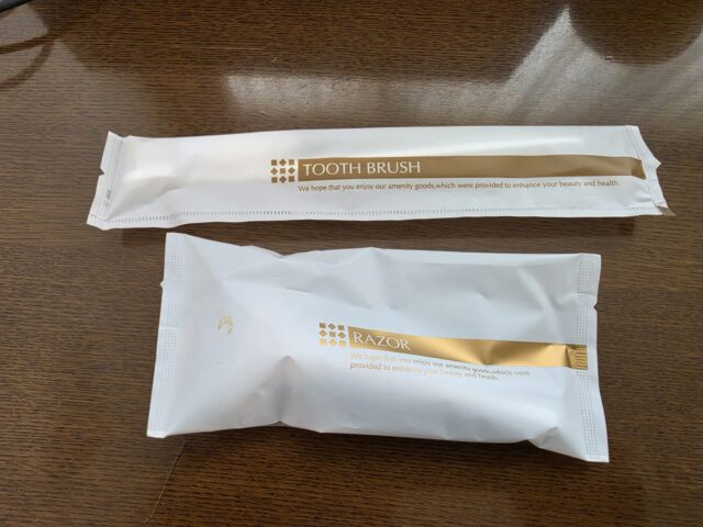 以前は部屋に置いてあった歯ブラシとT字カミソリは、エレベーターホールから自分で取る方法に変わってました
