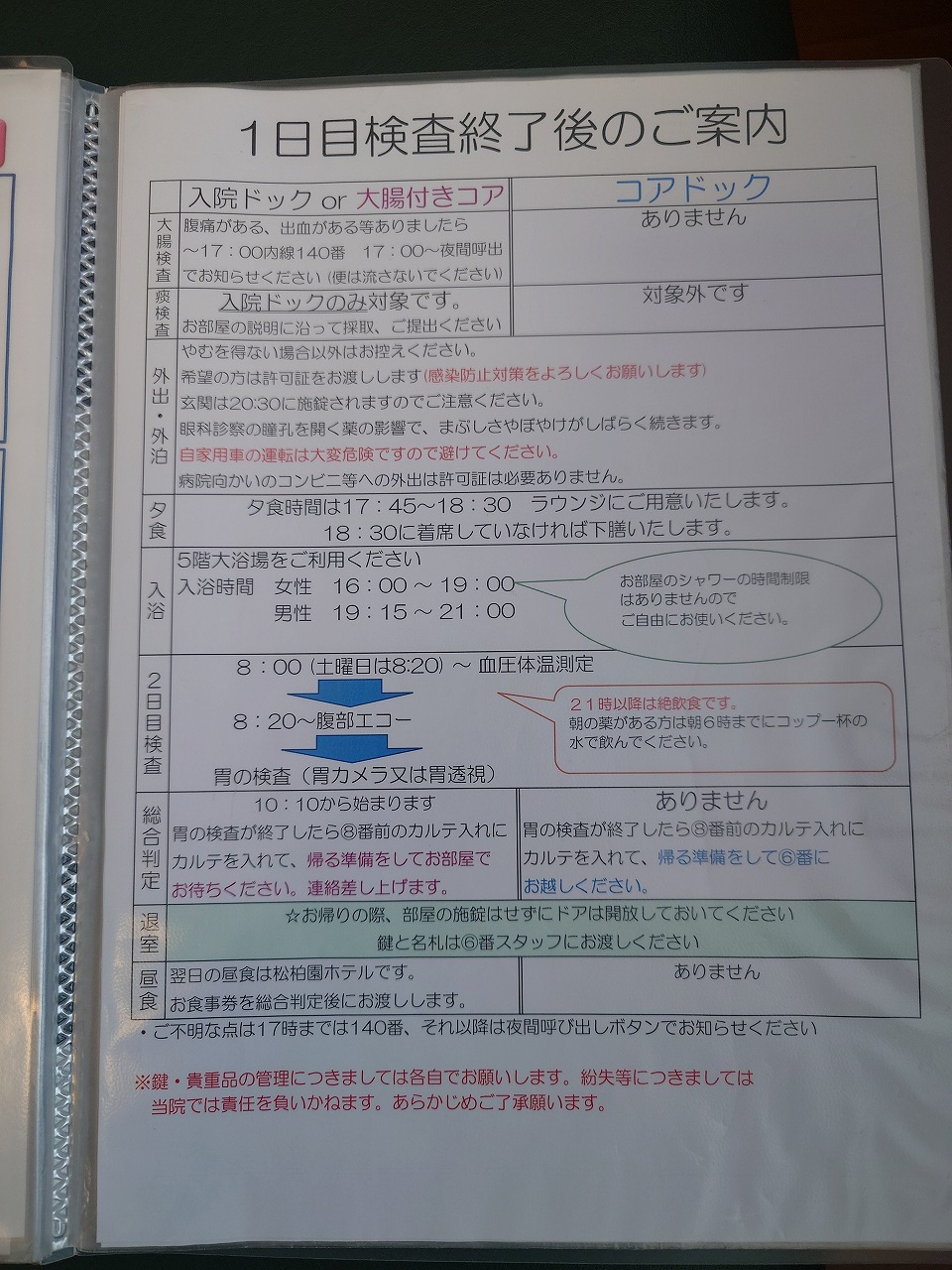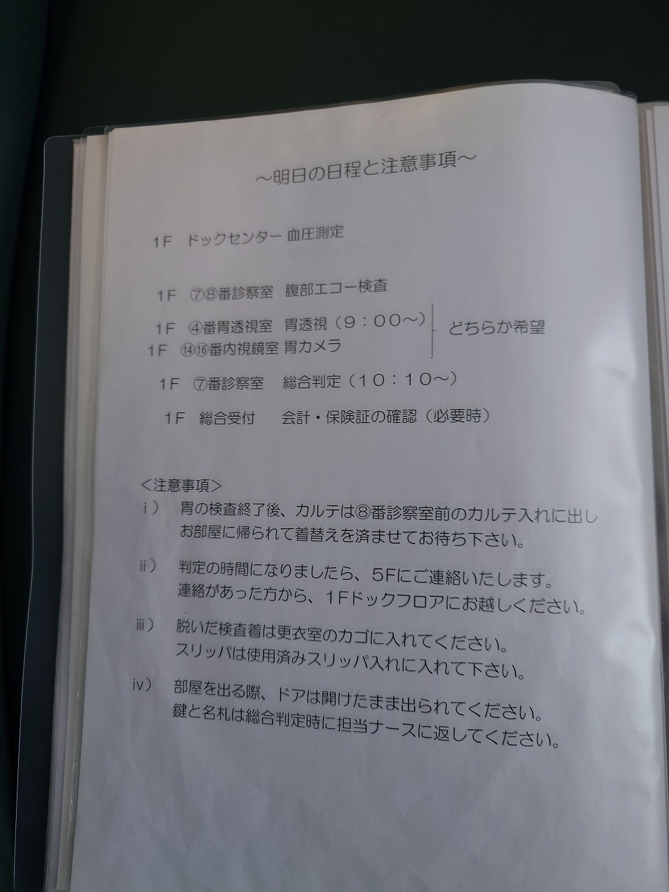 9:26 2回目の採血まで時間があるので、部屋の鍵を受け取り5階へ