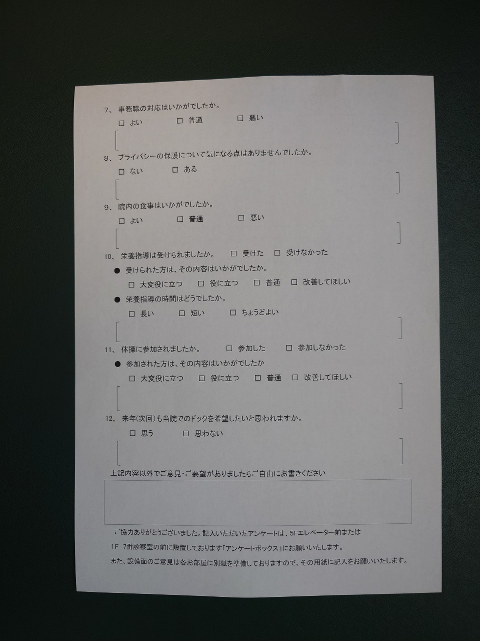 アンケートは明日書きましょう