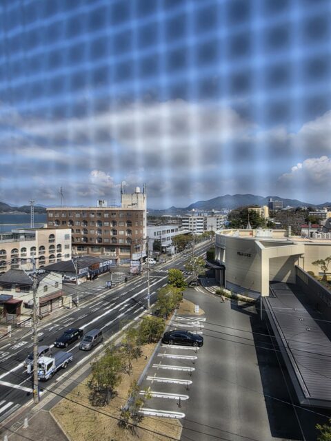 窓からの眺め(近距離では網戸が写ってしまいました)