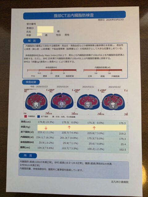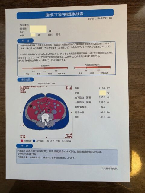 では、本日のCT内臓脂肪の検査結果です