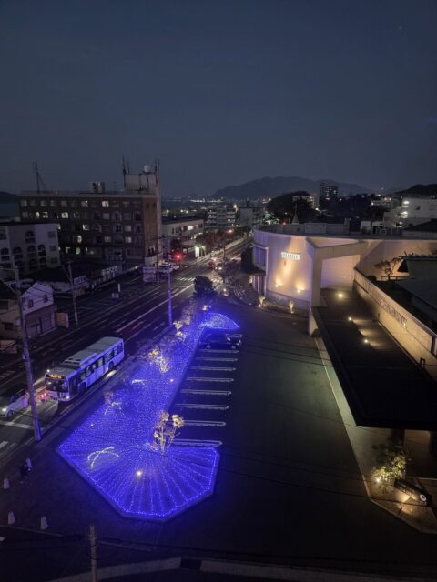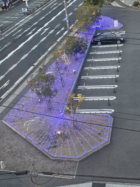 隣のホテルのイルミネーションが映えますな