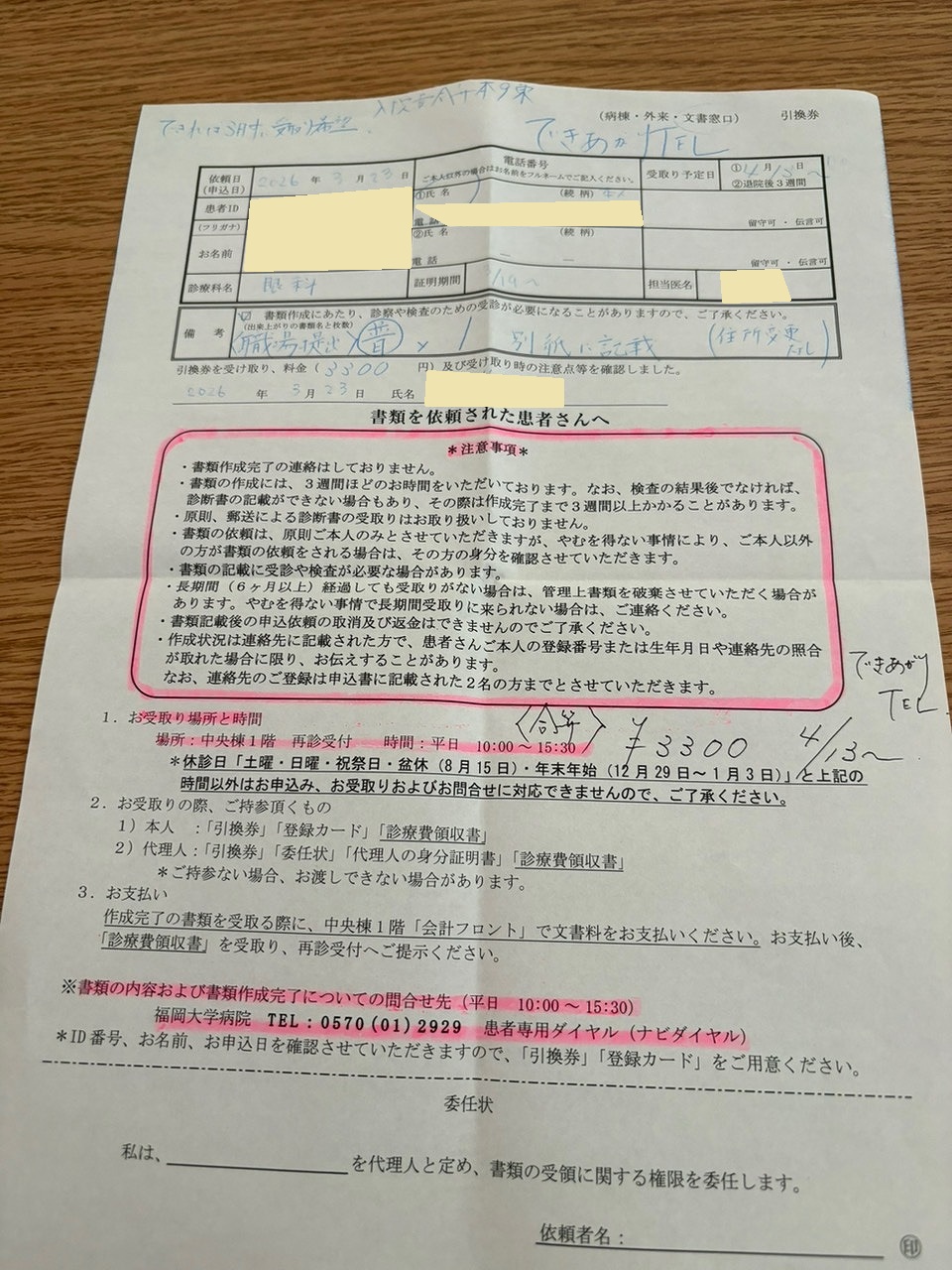 しかし、ヒッピー風?なロンゲの先生はいつもの「ここまで診ました」紙をくれなかった