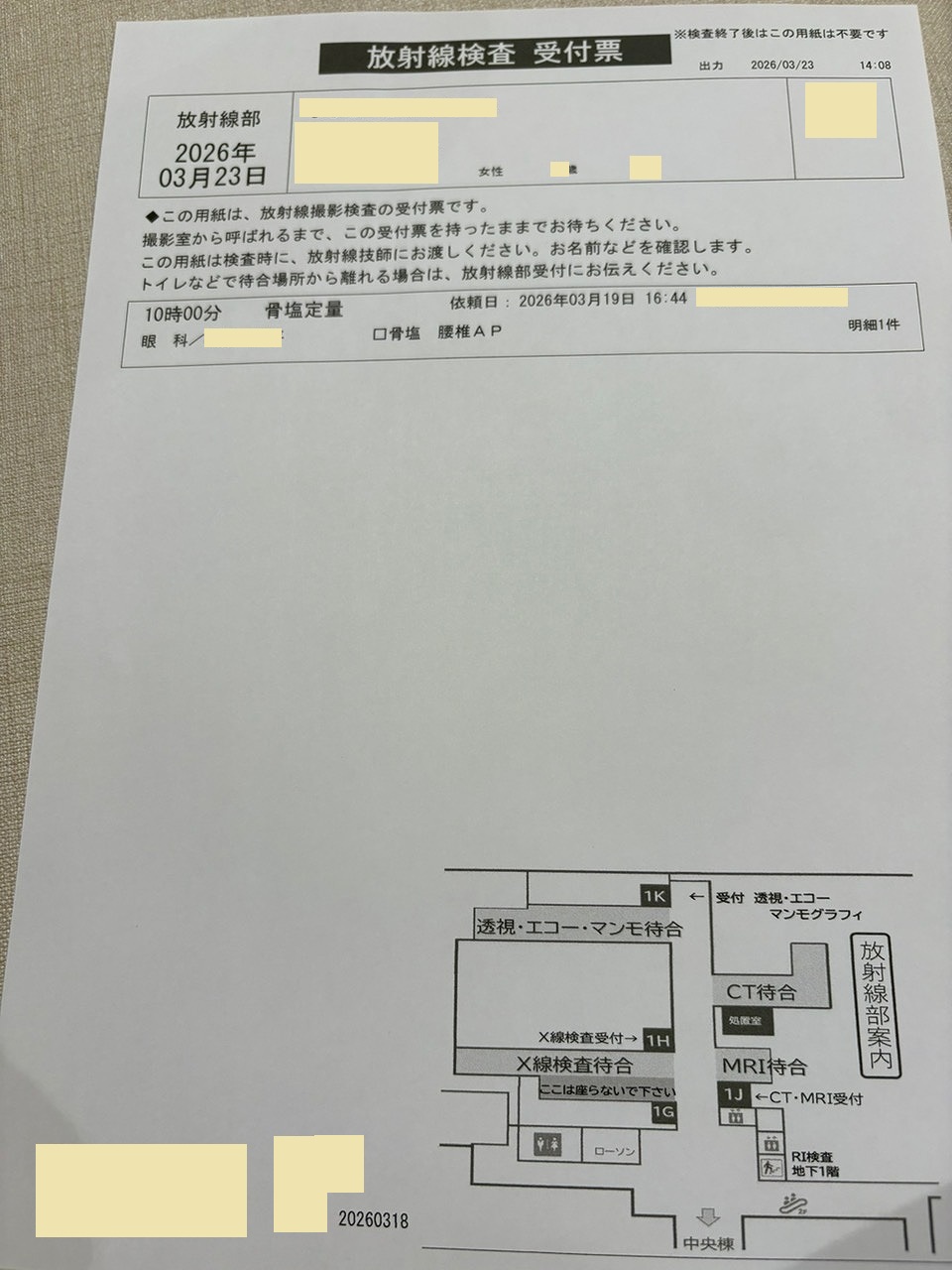 9:03 骨塩量測定、レントゲン&MRI撮影、心電図終了