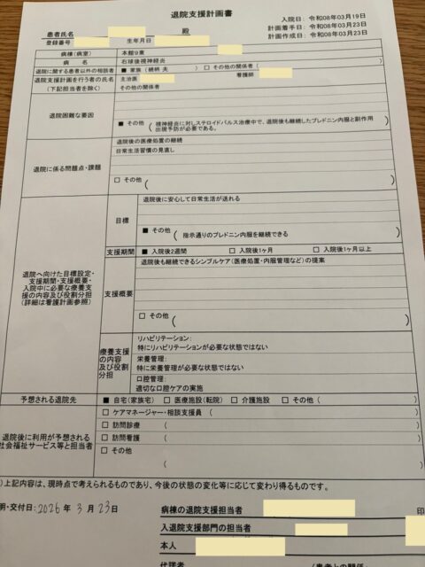 「通院支援計画書」なるものを受領したみたいです