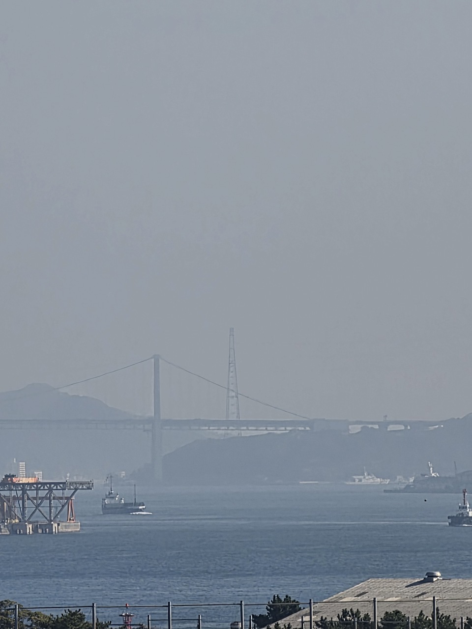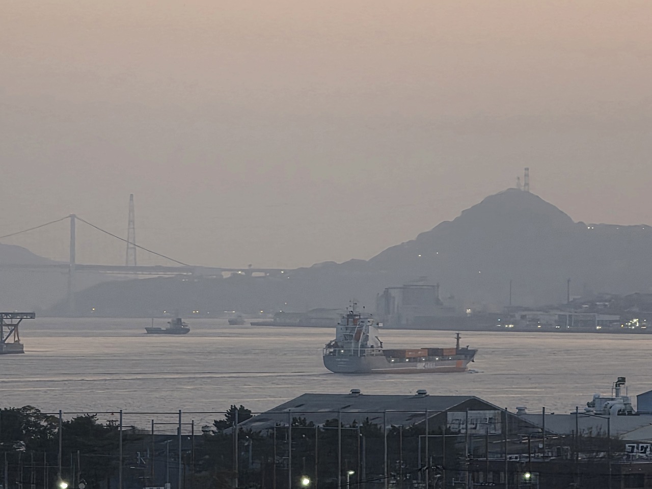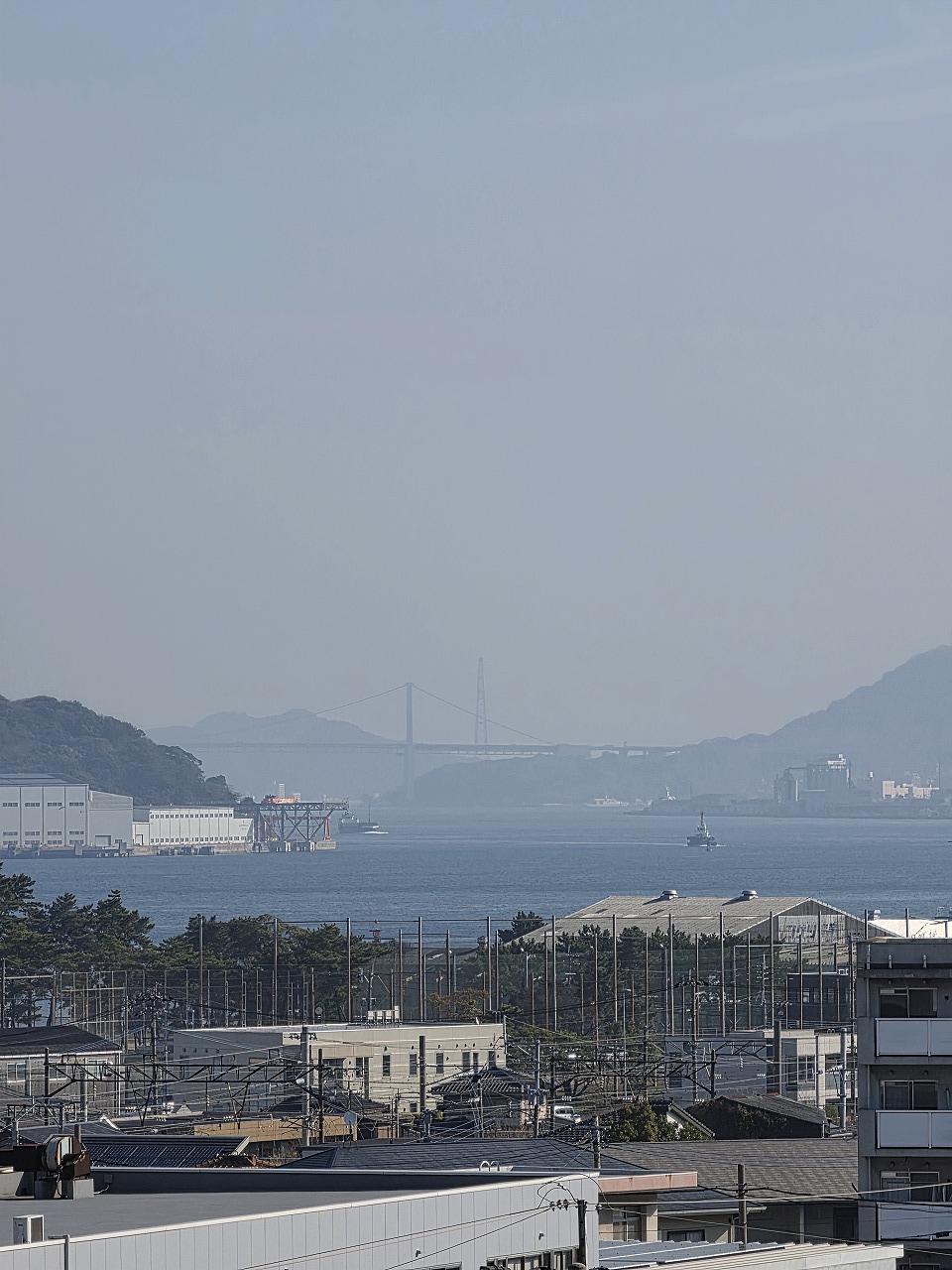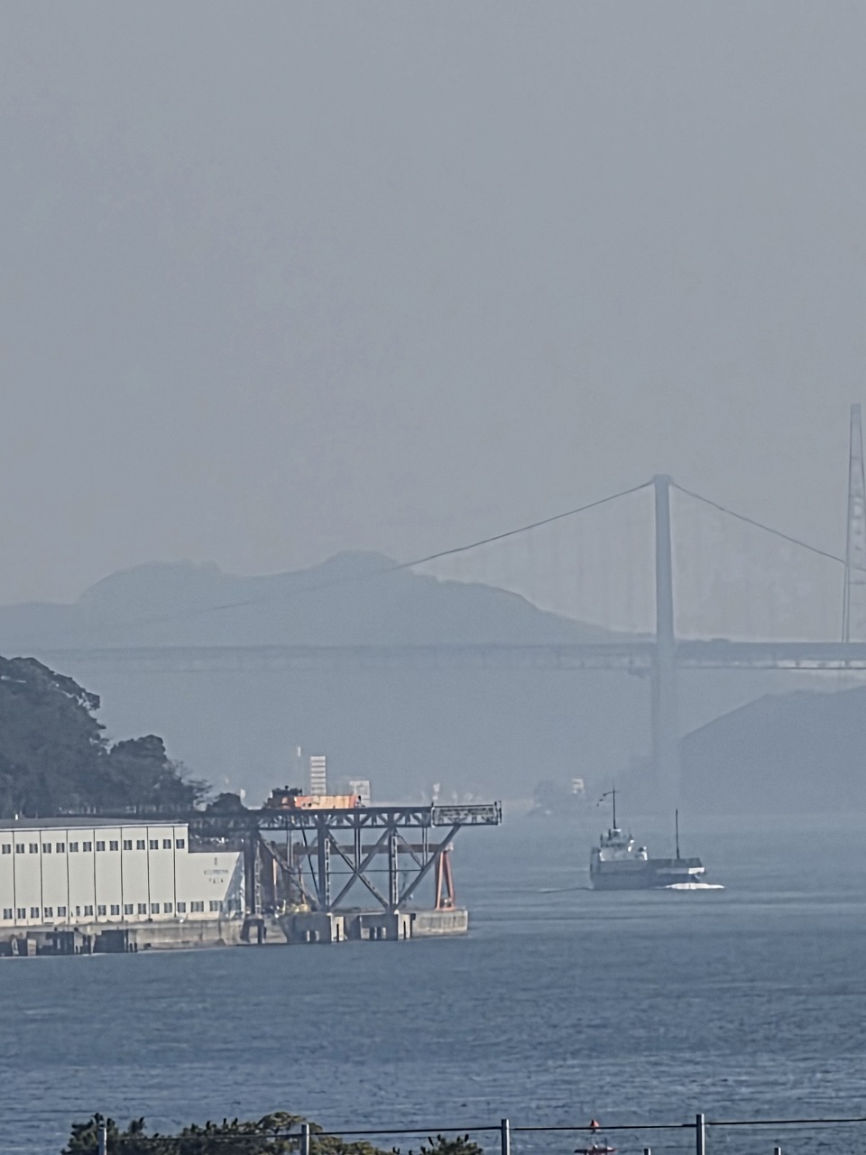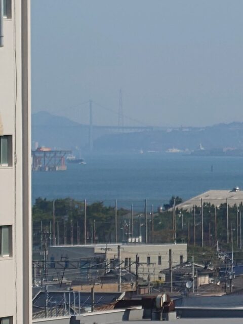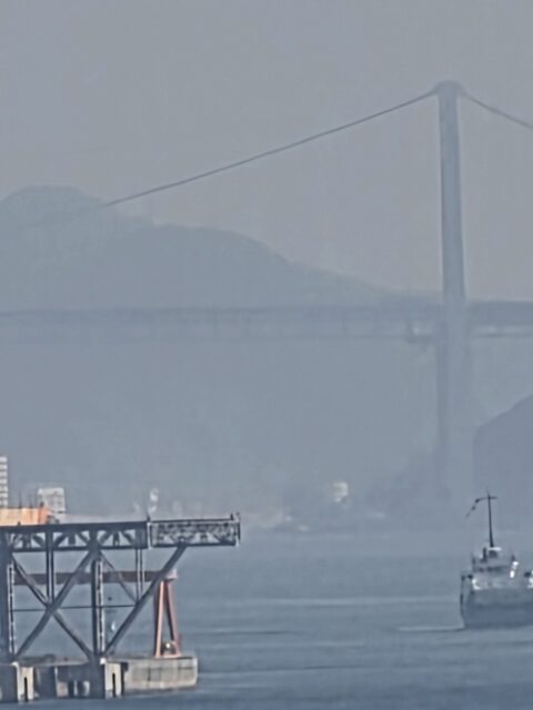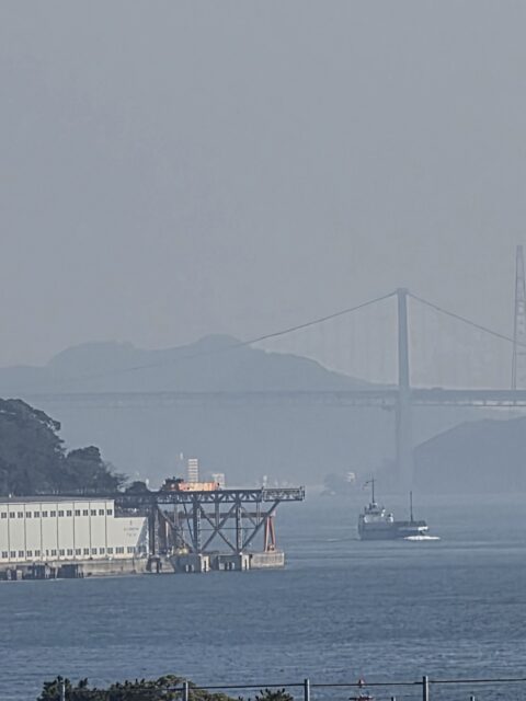 で、より関門橋が見やすい位置の食堂から今一度の撮影テスト