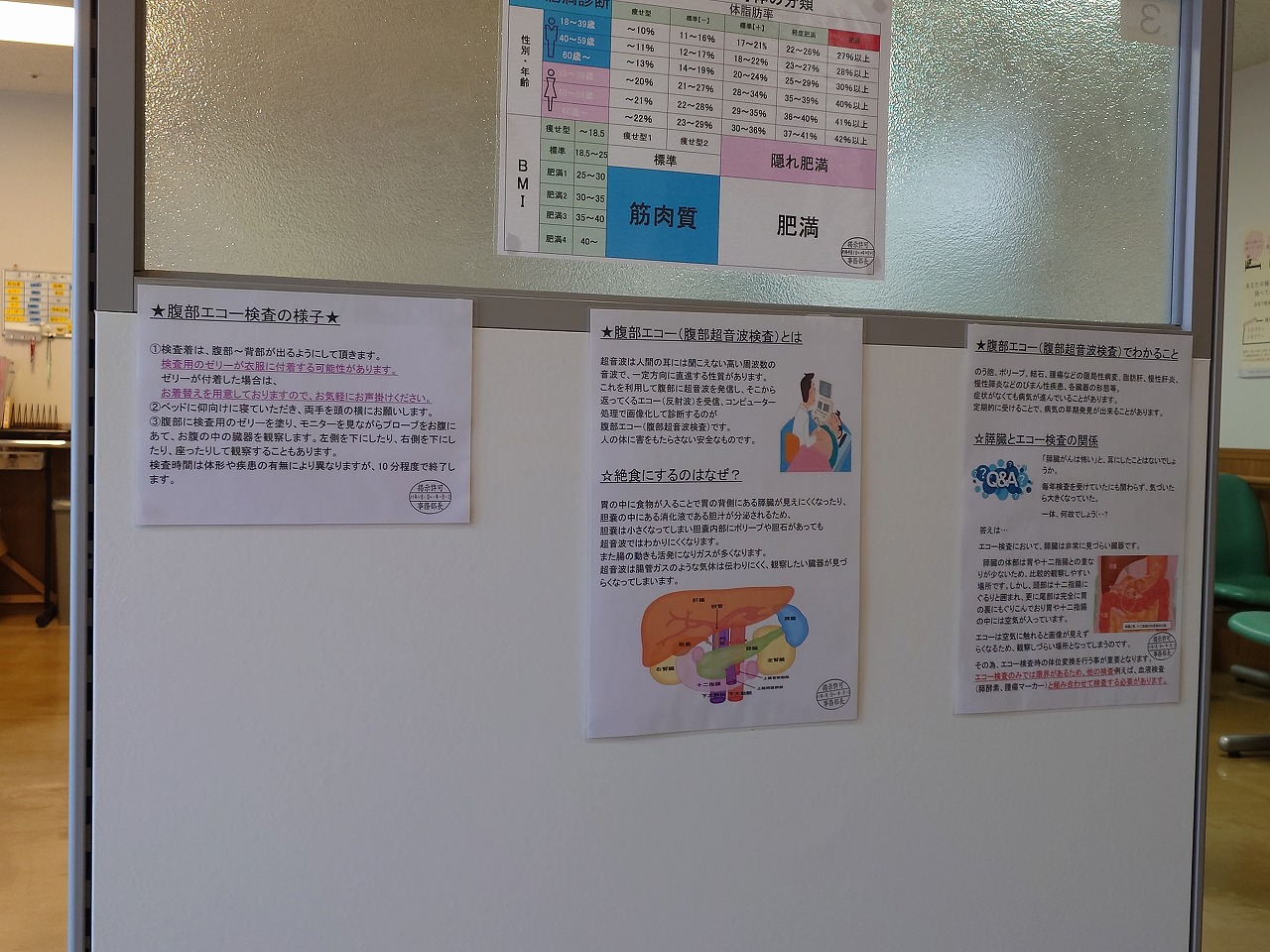 本日の検査は、血圧・体温測定、腹部エコー