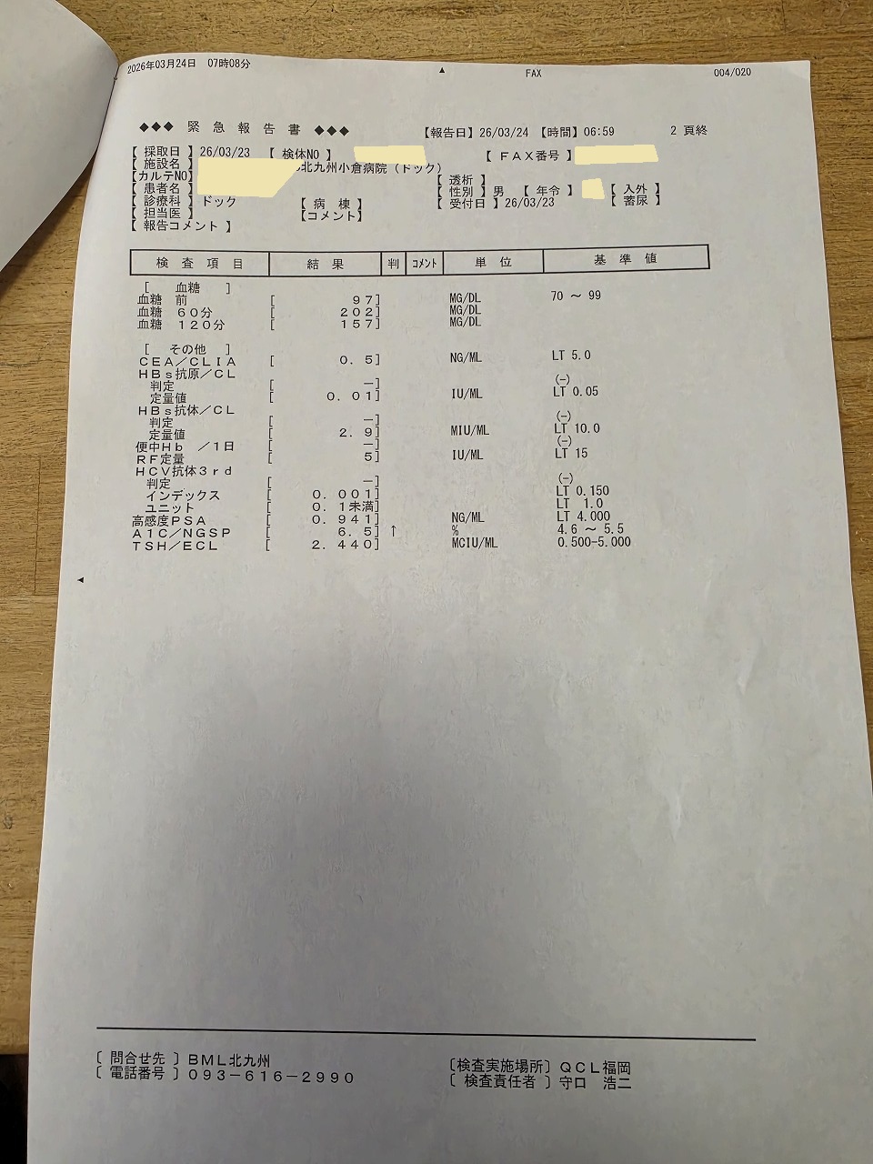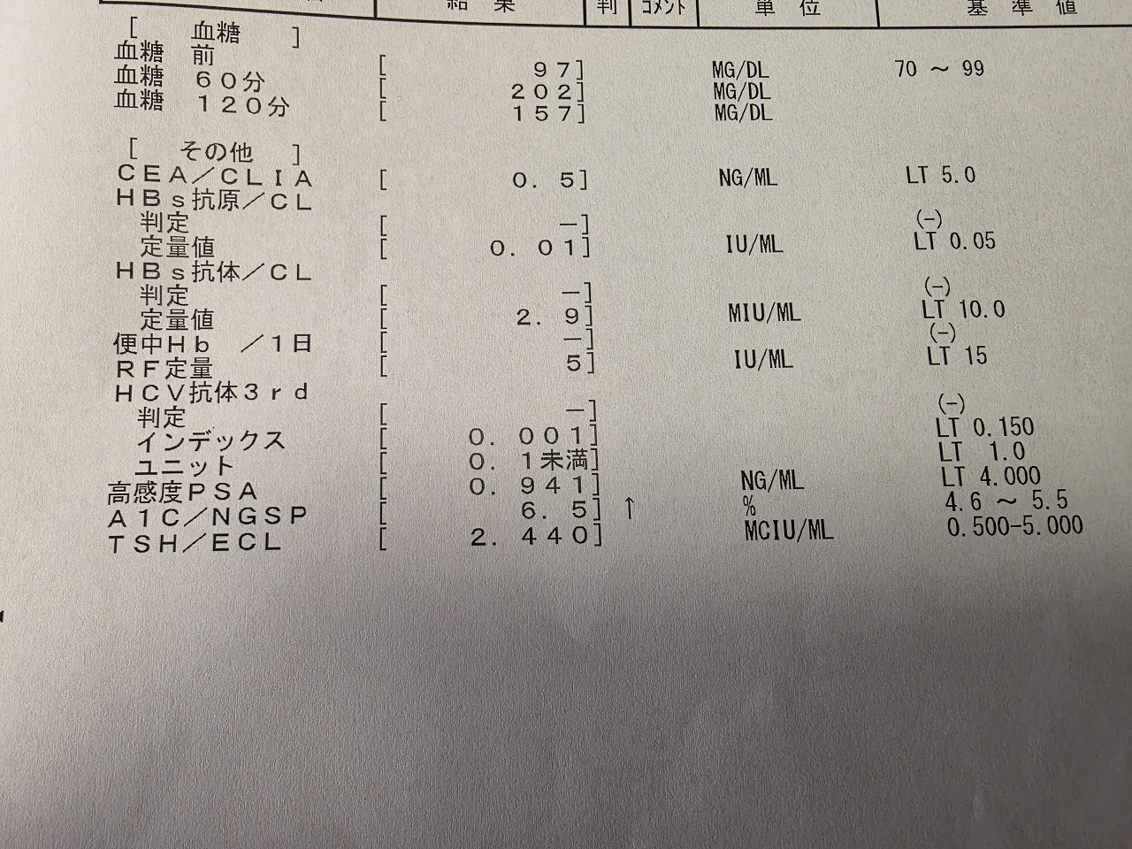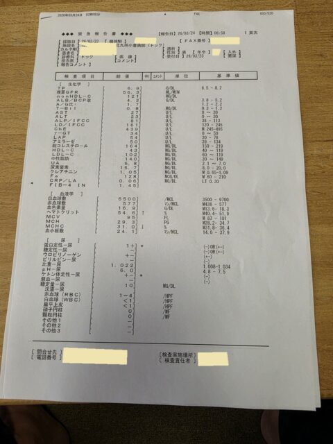 こちらが採血検査の結果速報