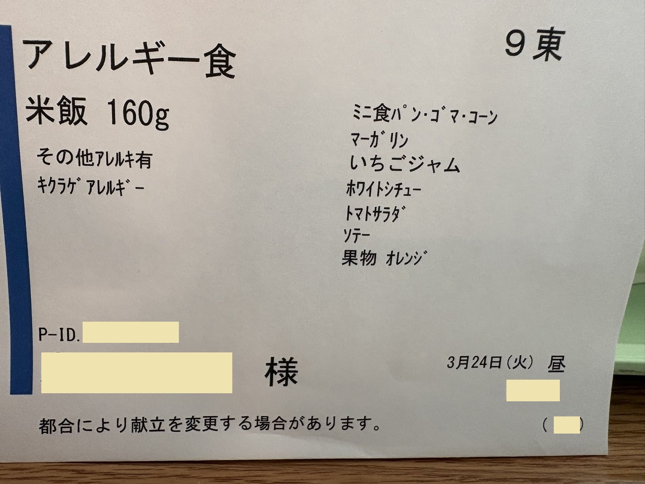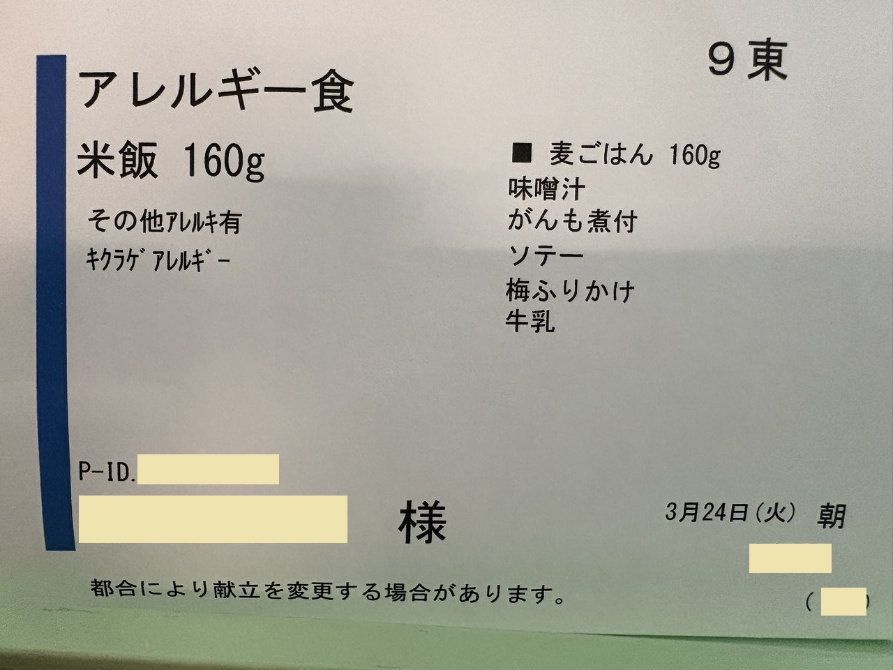 8:53 検査自体はすべて終了し、部屋に戻って退院準備