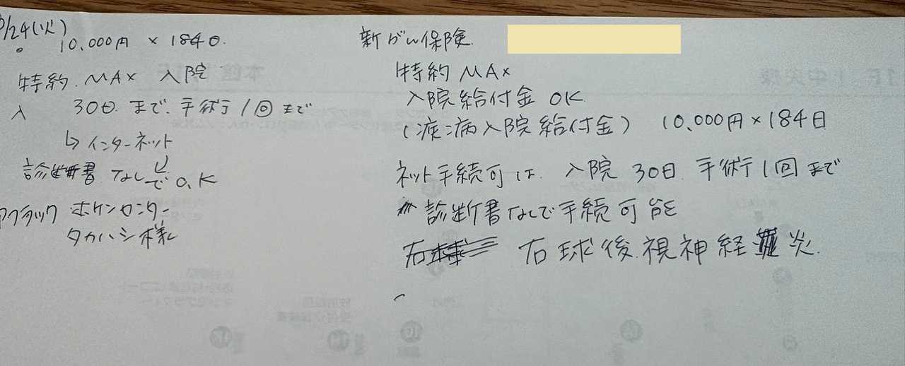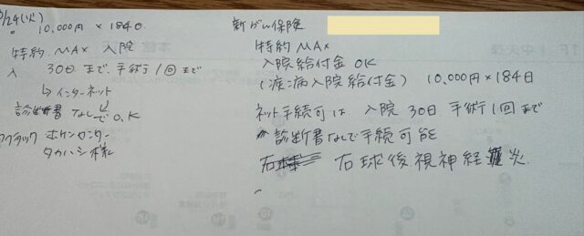 これは、嫁がアフラックに電話で確認した際のメモ