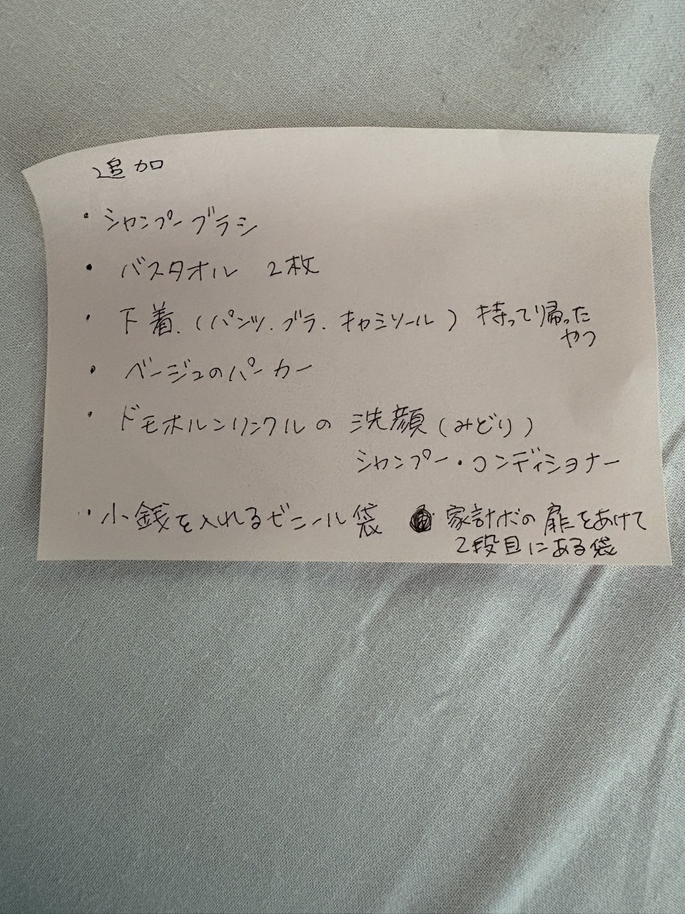 これは明日の自分の持参品リスト
