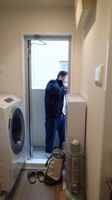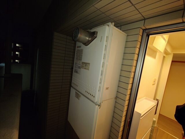 前々から気になっていた今回更改対象なベランダの給湯器下の部分、蓋を外して内部を見てみた