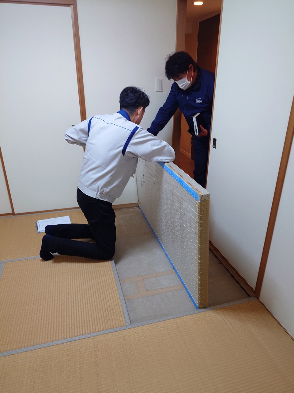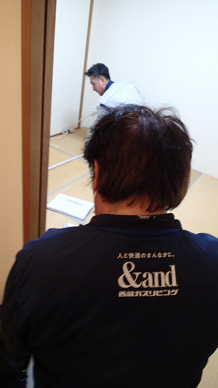 1名は壁紙専門職人、2名が畳専門職人、他2名が前回の現地確認者